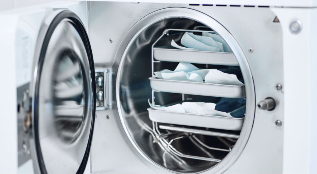 滅菌器を使用し、診療で使用する器具の滅菌を行っています。患者様ごとに滅菌済みの器具を使用しています。