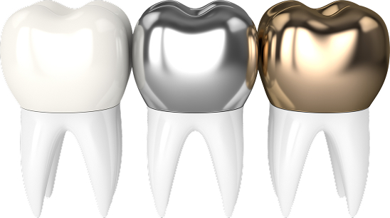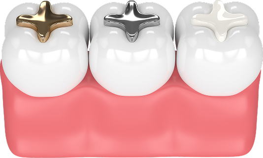 保険診療では銀歯(金属)のみが対象となり、歯の色に合わせたセラミックや白い樹脂は自費診療となります。レジンより耐久性が高いのが特徴です。