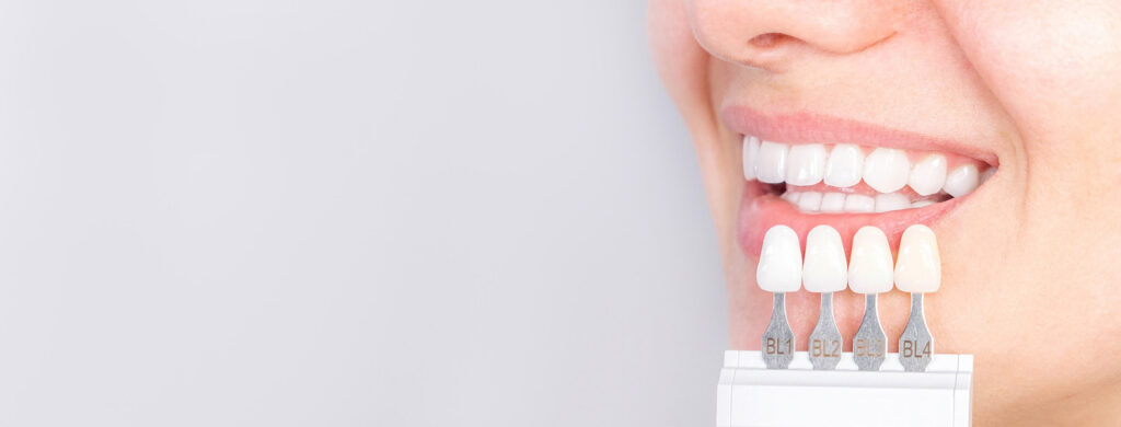 人工物(詰め物、被せ物、インプラント)はホワイトニングでは白くなりません。天然の歯のみ効果があります。目立つ詰め物や被せ物がある場合は、ホワイトニング後に色調を合わせて作り直すことを検討いただけます。
