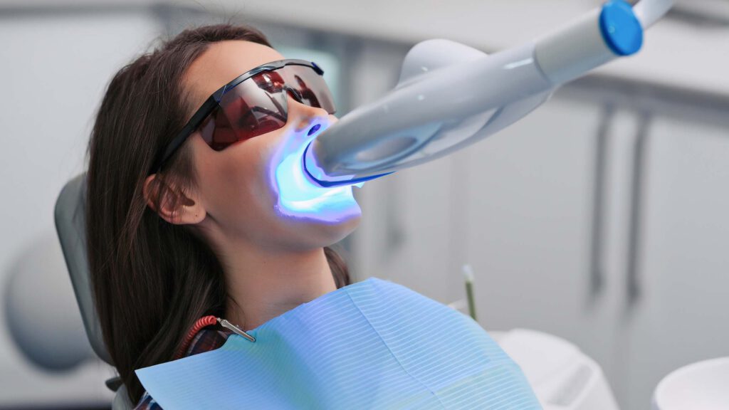 歯科医院で行う高濃度の薬剤による治療です。1回約60分の治療で効果が現れ始め、専用の光照射装置を使用します。短期間での治療を希望される方、通院回数を少なくしたい方に検討いただけます。