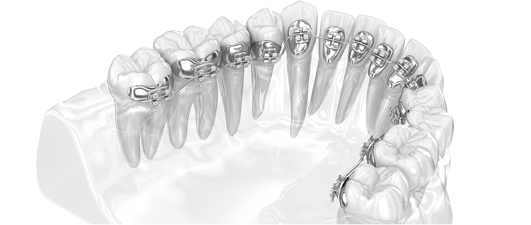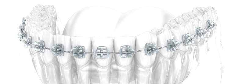 歯の表面に装置を装着する従来の矯正方法で、幅広い症例に対応可能です。セラミック製の白い装置も選べます。