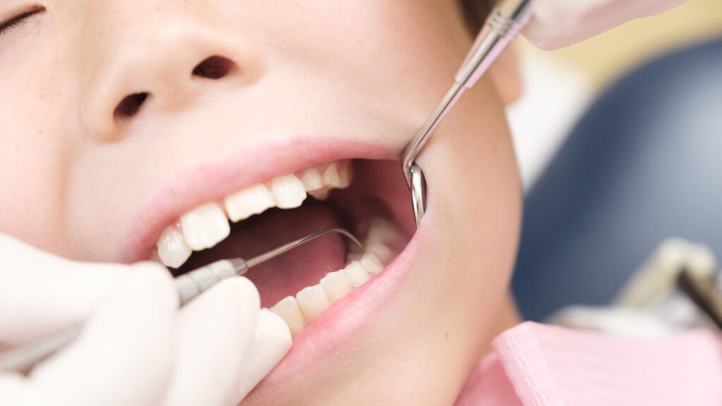 できるだけ痛みの少ない治療を心がけ、子供用の小さな器具を使用します。乳歯や生えたての永久歯に適した治療法を選択します。