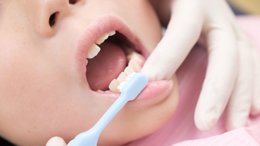 フッ素塗布(3~4ヶ月ごとに推奨)やシーラント(奥歯の溝を埋めて虫歯予防)を行います。また、歯磨き指導と食事カウンセリングも行います。